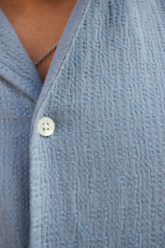 Aloha Shirt - Dobby Patchwork Cloth - Pale Blue