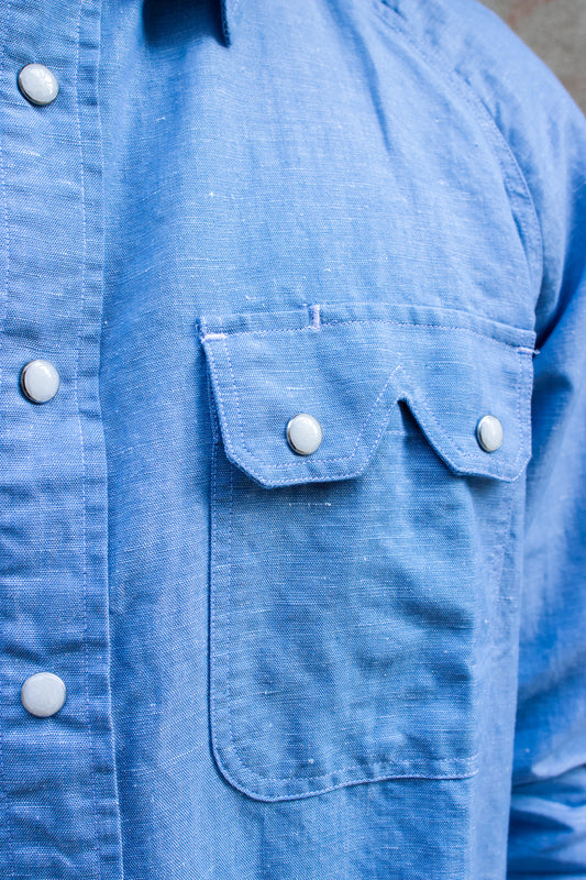 Push Button Shirt - Trail Blue Cotton/Hemp
