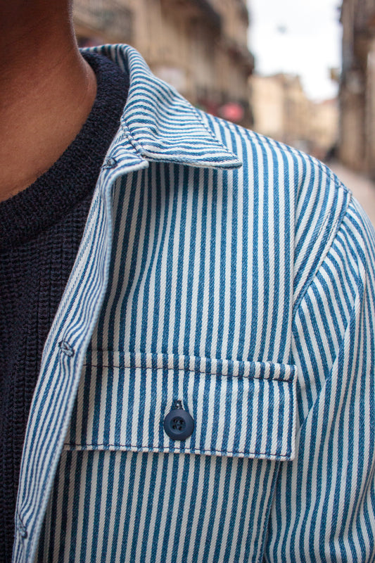 BWS-01 - Work Shirt - 6.5oz Blue & White Cord Stripe