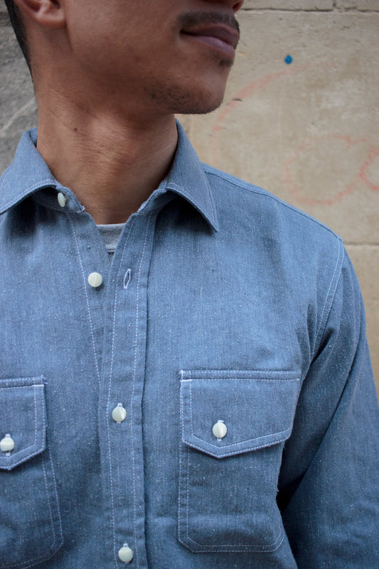 Crosscut Western Shirt - Cerulean Handloom Khadi Denim
