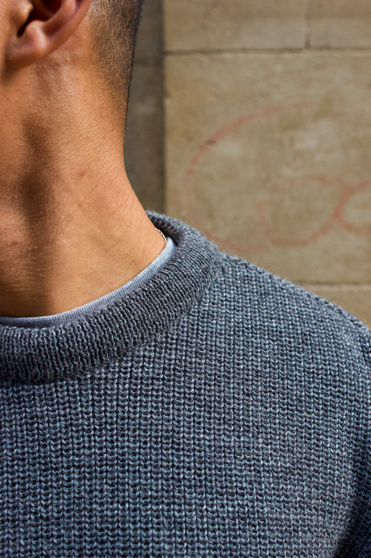 Rundhals Sweater Virgin Wool - Battleship Grey
