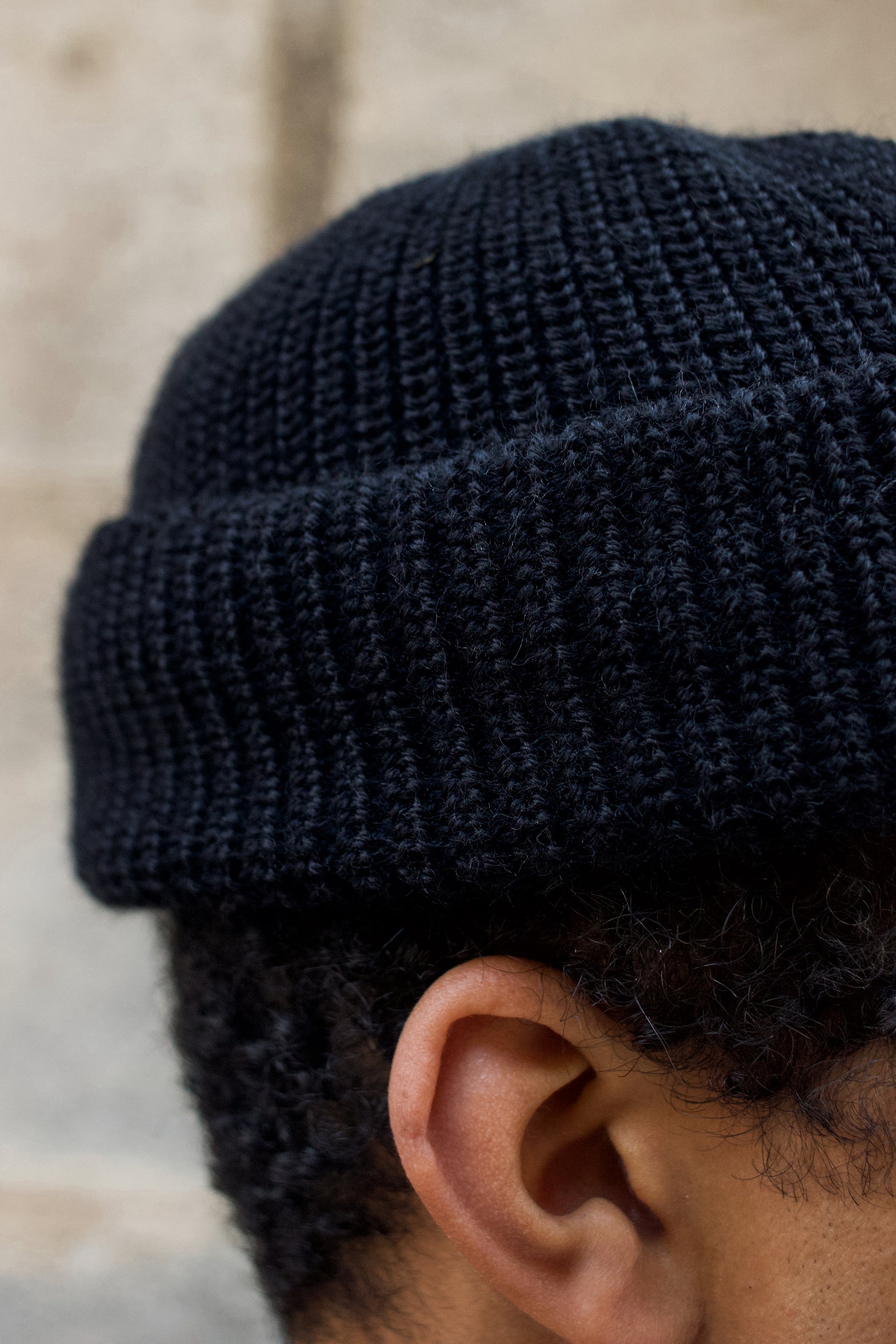Based on the standard issue USN watch cap worn during WWII, the Mechanics Hat is made distinct by its short profile and deep brim, which can either be worn above the ears, or rolled down as needed.