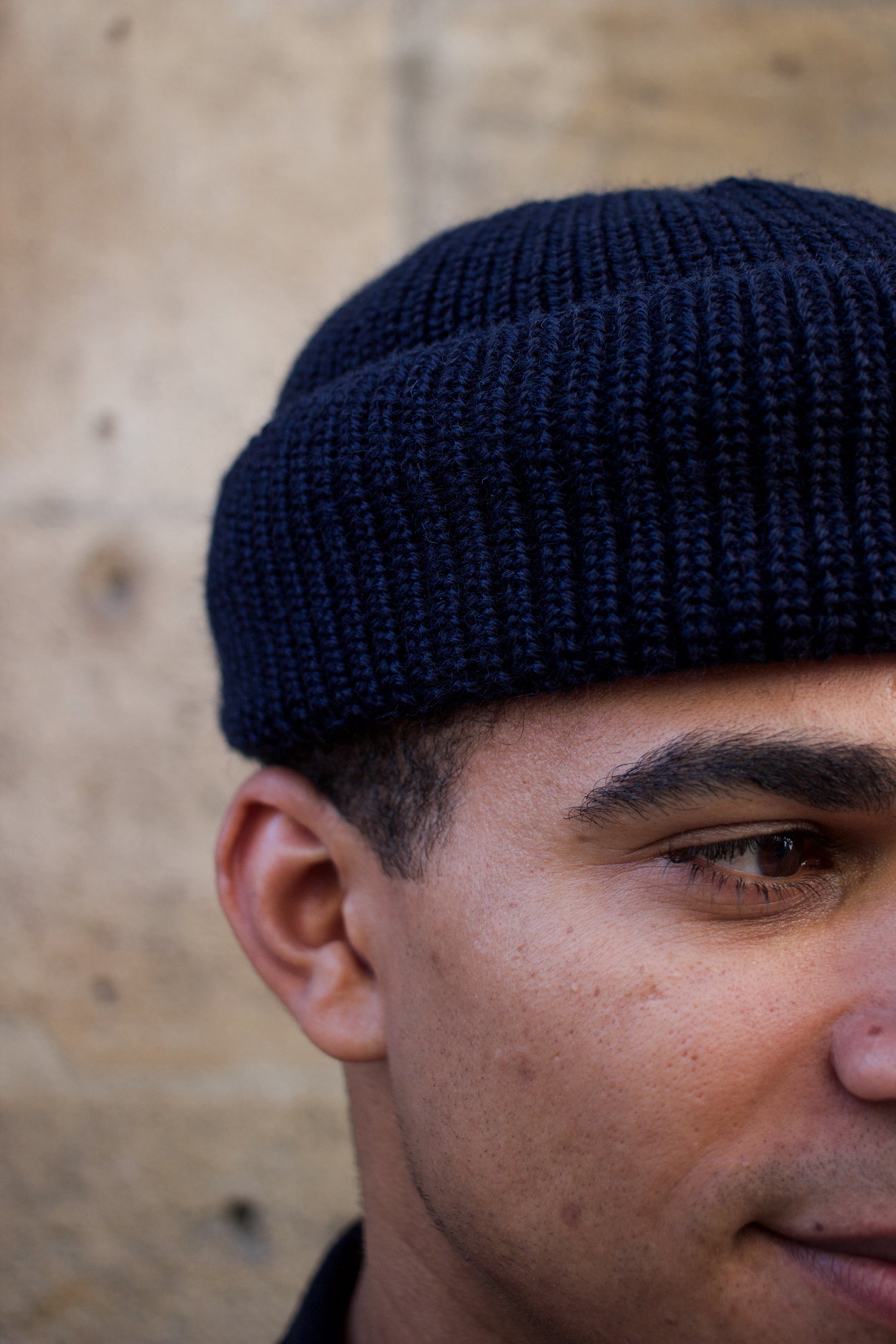 Based on the standard issue USN watch cap worn during WWII, the Mechanics Hat is made distinct by its short profile and deep brim, which can either be worn above the ears, or rolled down as needed.