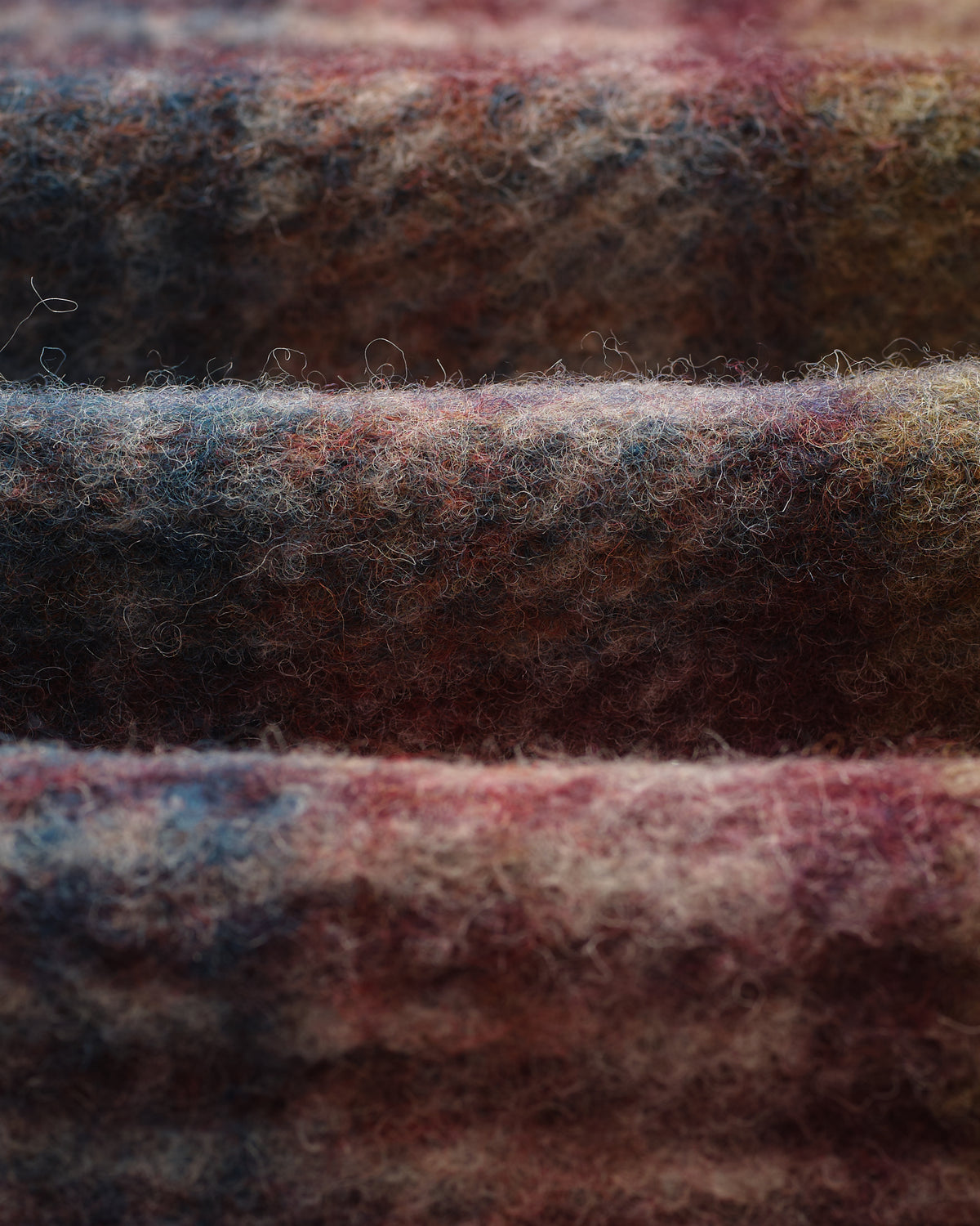 The unique wool checks and stripes are woven at traditional family-run mills, making each piece stand out with timeless character.